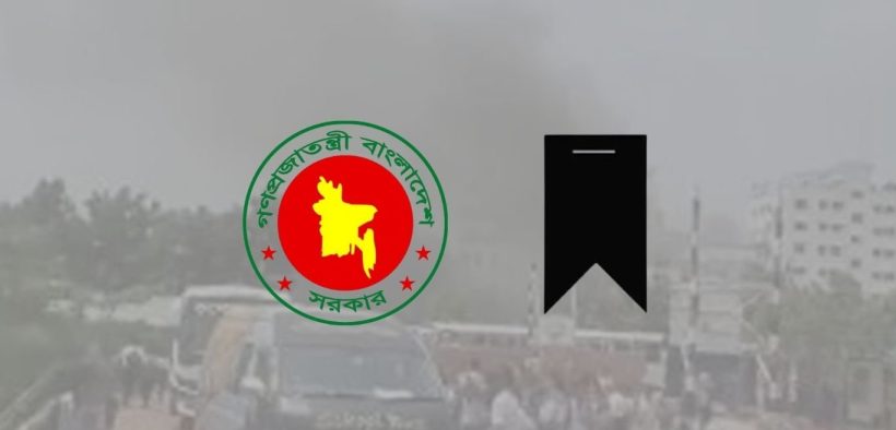 The government has declared a one-day state mourning tomorrow following the crash of a Bangladesh Air Force training aircraft on the Milestone School and College campus in the capital’s Uttara Diabari area, according to Chief Adviser’s Press Wing.
