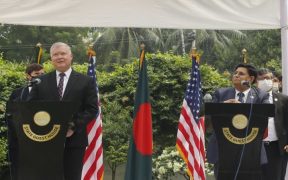 Online Desk: United States deputy secretary of state Stephen E Biegun ( L) speaks at a press briefing in Dhaka on October 15. The Chinese embassy in Bangladesh on Saturday said that a statement of ...