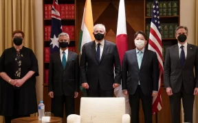 Quad nations Australia, India, the United States and Japan have drawn much closer in the last few years.(Reuters: Kevin Lamarque) The leaders of the Quad nations have held a hastily arranged meeting to discuss the crisis ...
