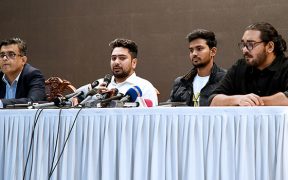 Bangladesh interim government information and broadcasting adviser Nahid Islam, second from left, speaks at a press conference held at Foreign Service Academy in Dhaka on Monday. | CA Press Wing Bangladesh desk: Information adviser ...