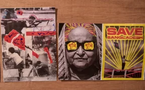 Images and cartoons related to ousted Bangladeshi Prime Minister Sheikh Hasina are seen pasted on a board inside her former official residence, which is being turned into a museum as a lasting reminder of her ...
