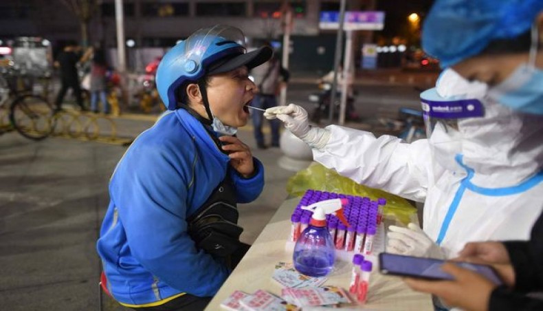 This photo taken on April 19, 2022 shows a resident undergoing a nucleic acid test for the Covid-19 coronavirus in Wuhan in China’s central Hubei province. — AFP photo
